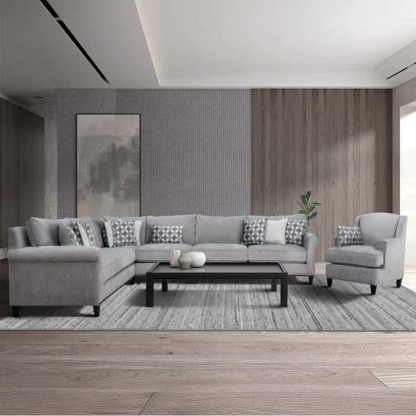 | يتضمن الطقم | 1 Corner Piece + 1 Loveseat with Right Arm + 1 Loveseat with Left Arm + 1 Armless Chair + 1 Sofa Chair |