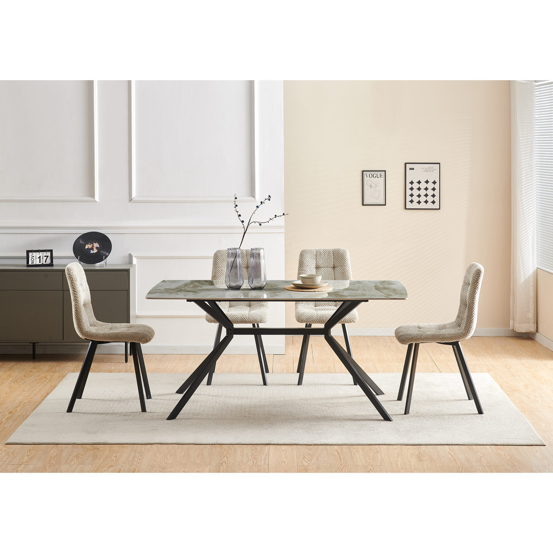 | يتضمن الطقم | 1 سفرة طاولة صغيرة + 6 سفرة كرسي |