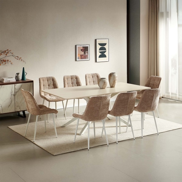 | يتضمن الطقم | 1 طاولة سفرة + 8 كرسي جانبي |
