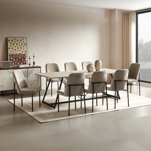 | يتضمن الطقم | 1 طاولة سفرة + 8 كرسي جانبي |