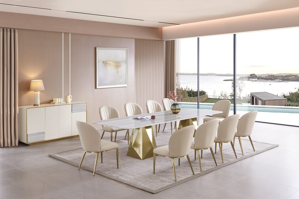 | يتضمن الطقم | 1 طاولة سفرة + 10 كرسي جانبي |