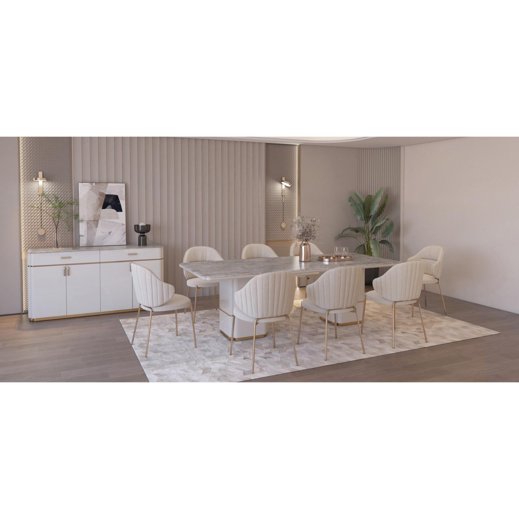 | يتضمن الطقم | 1 طاولة سفرة + 8 كرسي جانبي |