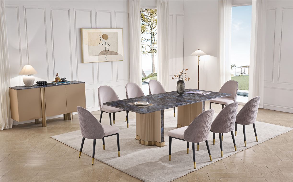| يتضمن الطقم | 1 طاولة سفرة + 8 كرسي جانبي |