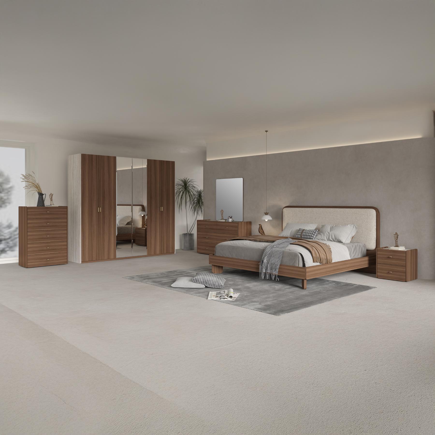| يتضمن الطقم | 1 Bed + 2 Night Stand + 1 Dresser + 1 Mirror + 1 Chest + 1 Dressing Stool |