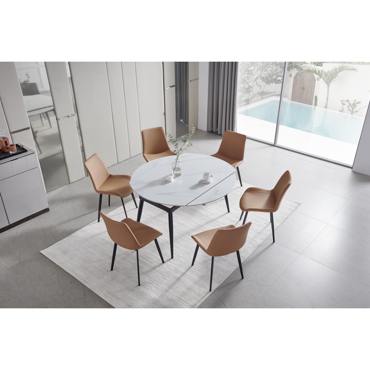 | يتضمن الطقم | 1 سفرة طاولة صغيرة + 6 سفرة كرسي |