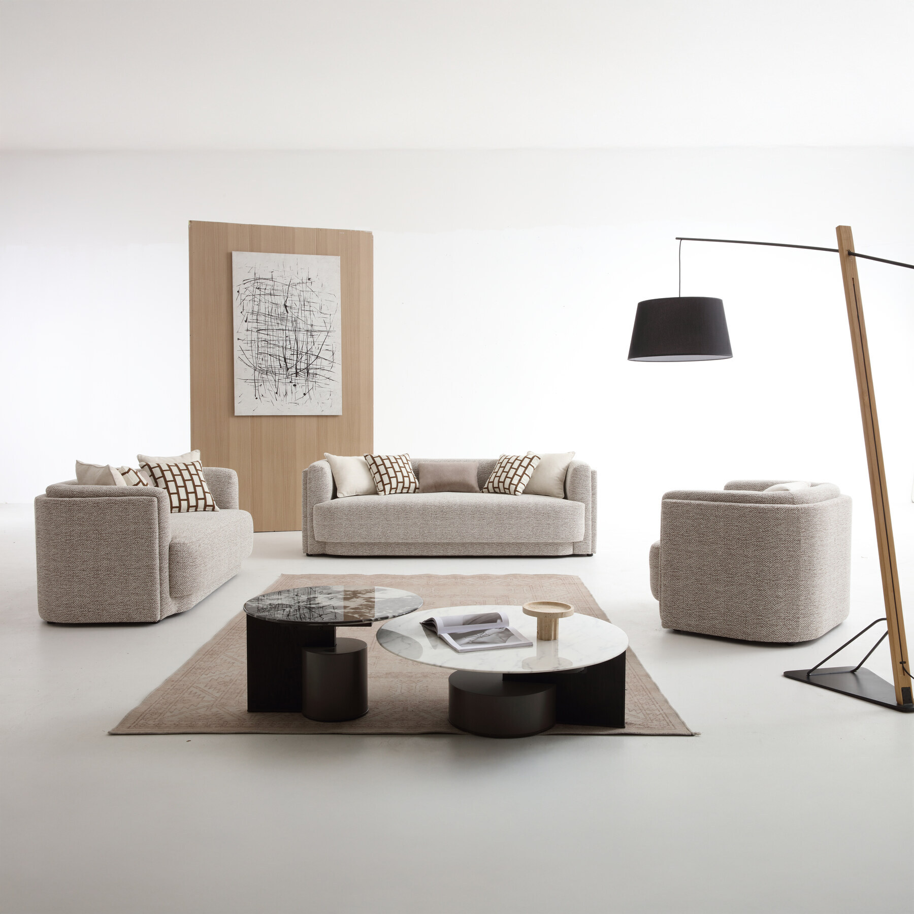 | يتضمن الطقم | 1 صوفا + 1 لفسيت + 1 كرسي كنب |